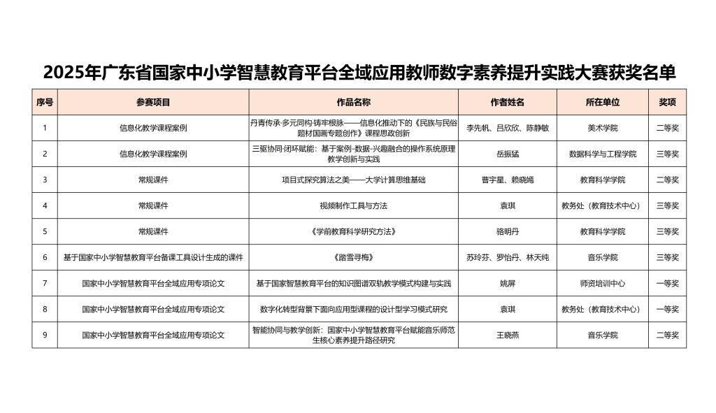 • 喜報!我校教師在2025年廣東省國家中小學智慧教育平臺全域應用教師數字素養提升實踐大賽中榮獲佳績??